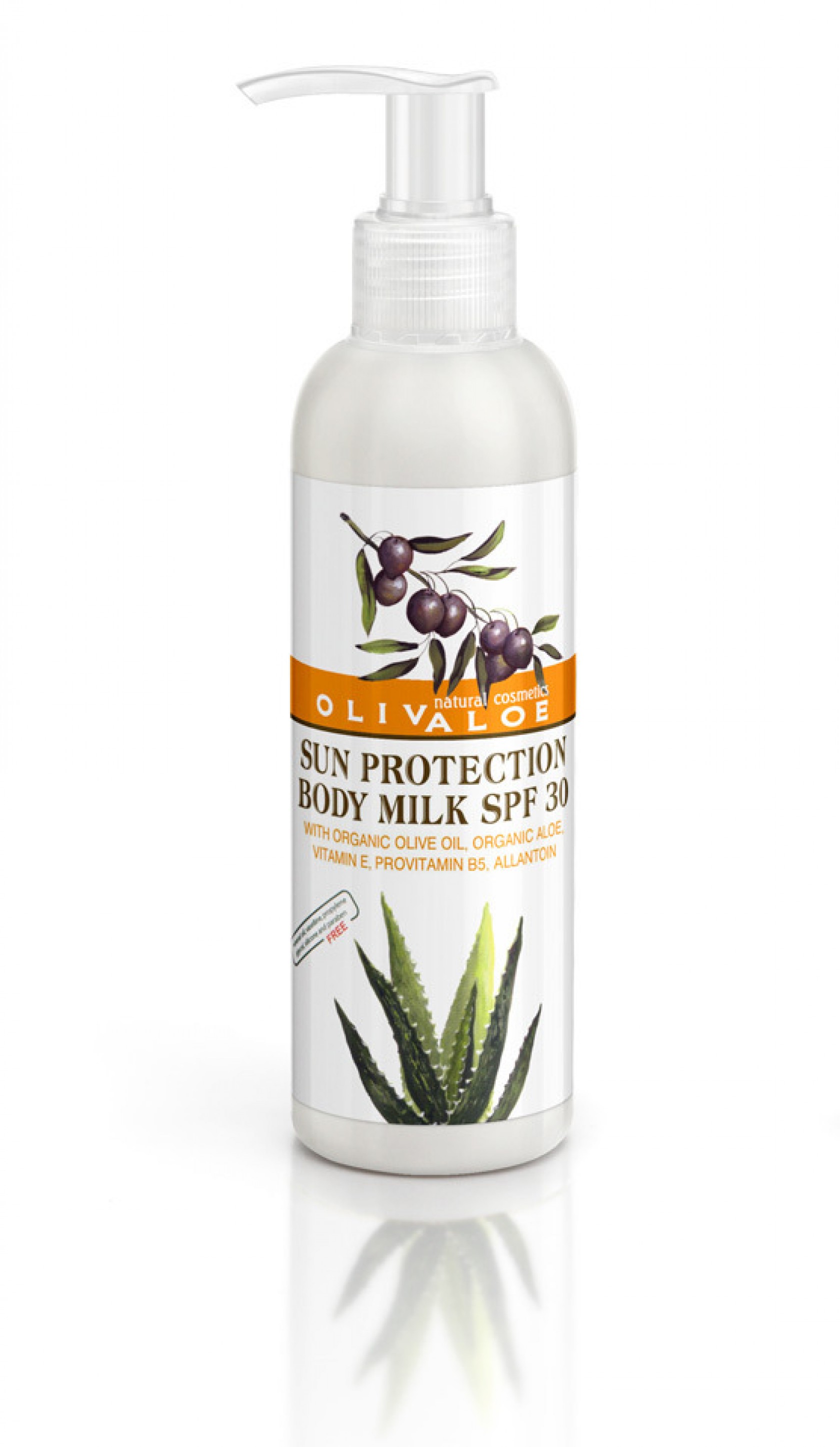 Olivaloe sun protection body milk SPF 30 with organic olive oil, organic aloe vera, vitamin E, provitamin B5, allantoin, as well as a filtering system against UVA/UVB radiation, offering the ideal protection to your skin's health. It offers immediate protection from sunburn and early skin aging, and is absorbed immediately, leaving the skin fresh, with a light silky sensation and no residues or greasiness. It is waterproof and the combination of its moisturising ingredients offers a high level hydration together with a protection that last. For all skin types.